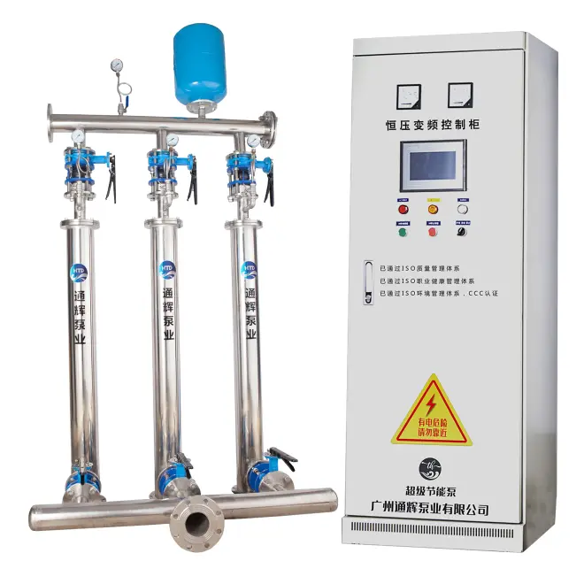 4、新设备进水前端加装电接点压力表以防止市政缺水,保护水泵;新设备出水端加装压力传感器,实时检测和反馈出水压力,由控制系统智能实现变频恒压供水。