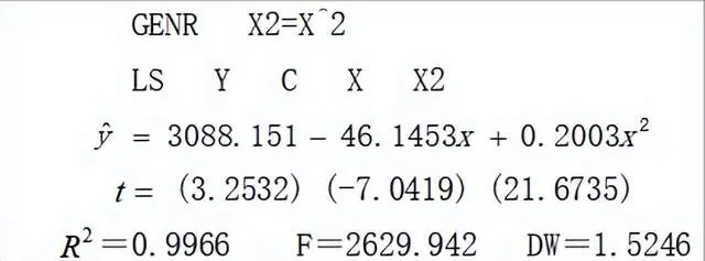 在实际操作中的难点在于,xy的关系事先是不清楚的,需要对模型进行筛选,根据展示的xv趋势图的初步关系判定模型类型,分别输入不同的指令,这里的引力模型对应双对数模型。
