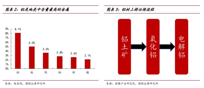 铝在自然界广泛存在。铝元素在地壳中的含量位于氧和硅之后,排名第三。在金属中的占比约为 75.1%,是地壳中含量最丰富的金属元素,也是比较容易获得的金属。