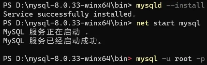 7、cd D:\mysql-8.0.33-winx64\bin