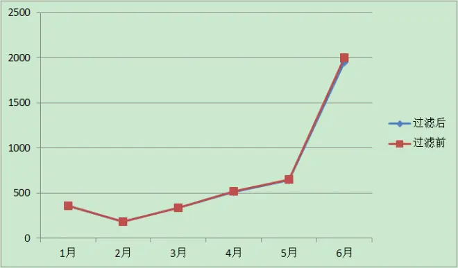 节奏大师 每月播放量过滤前后折线图