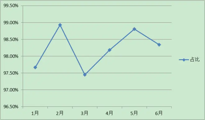 节奏大师 每月播放量过滤前后占比折线图