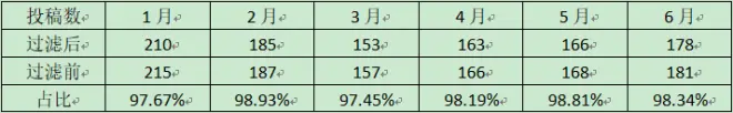 投稿数过滤占比情况(以平均占比由上到下排序)