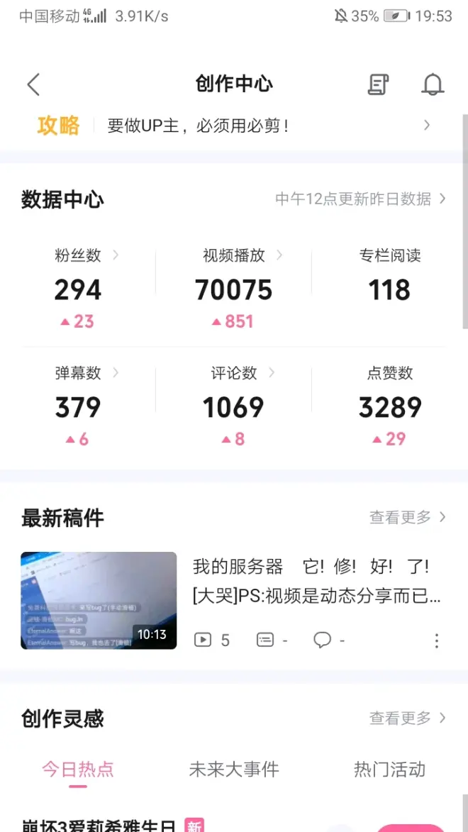 回想起来,我应该是从高二(2022)左右开始做阿婆主的,这个号确实很早以前就已经创建出来了,但是一直都在沉寂(就偶尔水下视频那样),直到高二的时候才突发奇想去做了UP主