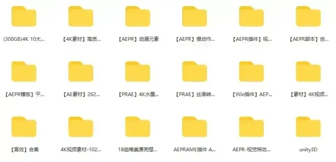 AE/PR插件+特效素材+音效素材+模板预设+海量工程文件等……