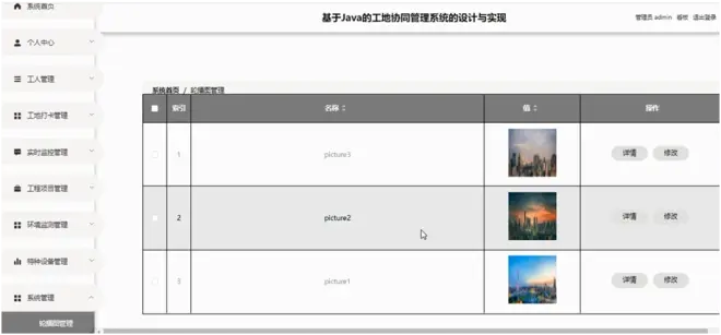 管理员点击系统管理。在轮播图管理页面对轮播图管理进行详情或修改操作;如图5-15所示: