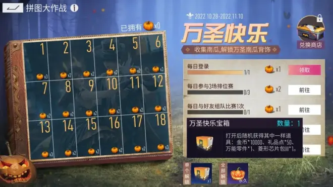 ◇福利活动:万圣节拼图大作战,南瓜背饰免费领;一元拼团等福利限时开启。