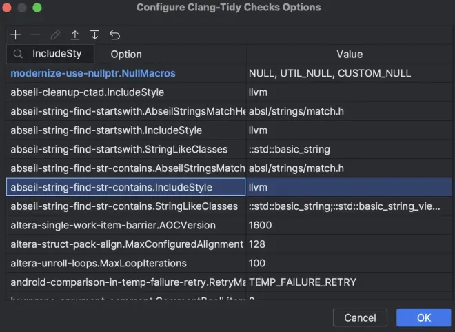 CLion 2023.1 附有更新的 Clang-Tidy 检查选项对话框: