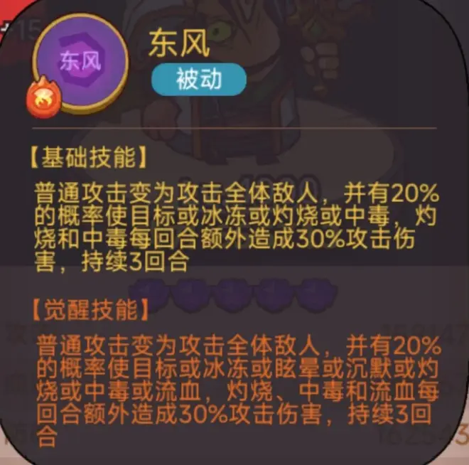 上面那张图,诸葛亮一个普攻能打出一个冰冻状态、两个灼烧状态、两个中毒状态。注意,诸葛亮打出这些状态的概率是20%概率而已。