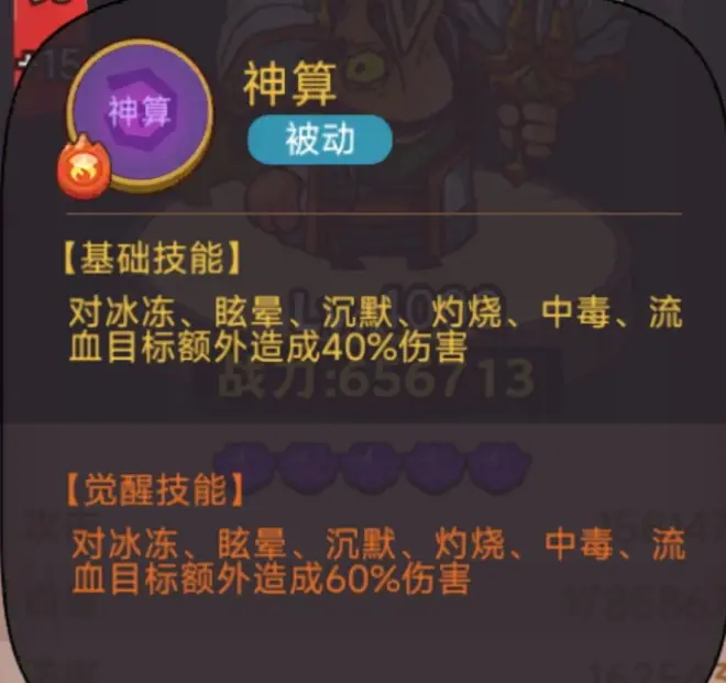 现在由普攻制造1种控制状态和2种持续伤害状态变成3种控制状态和3种持续伤害状态。虽然概率都只是20%,但普攻是全体武将,敌方每个武将都有着20%概率被冰冻、20%概率被眩晕、20%概率被沉默、这控制能力你说呢?其他三种持续伤害状态就不扯了,也就造成点伤害,主要作用是配合被动一(神算)打出高额伤害。