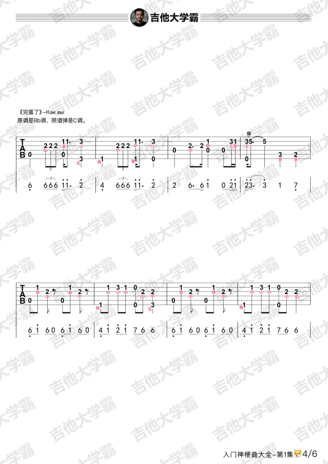 教学视频配套原版谱,视频链接:神梗曲大全集第一集视频