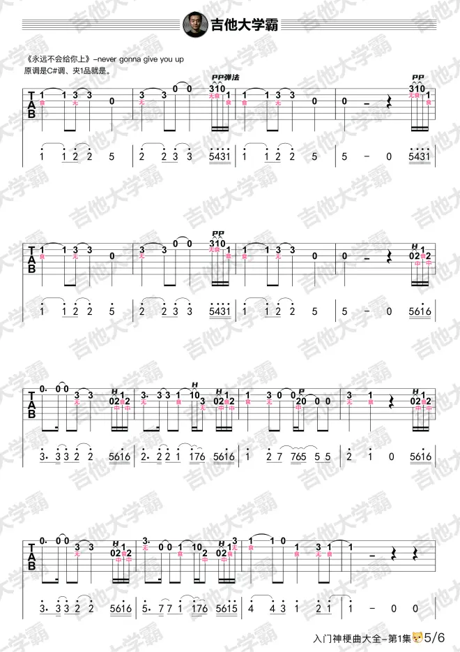神梗曲大全集·第一集配套吉他谱|零元、黑人抬、Never gonna give you、be continued