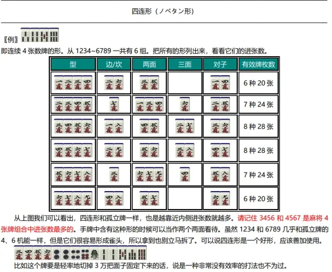 请注意,由于四连型进好型的概率是很大的,因此我们不用考虑“先改良,改良来了再推进向听”这一想法,直接前进。