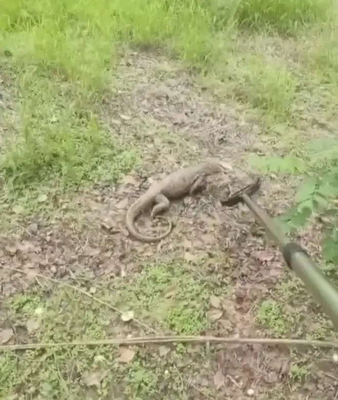 大兴惊现一米长巨型蜥蜴 专家:暗影巨蜥 被放生