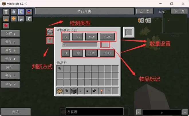 发信器的作用:对网络内物品的数量进行判断,若符合判断条件,则发出/不发出红石信号