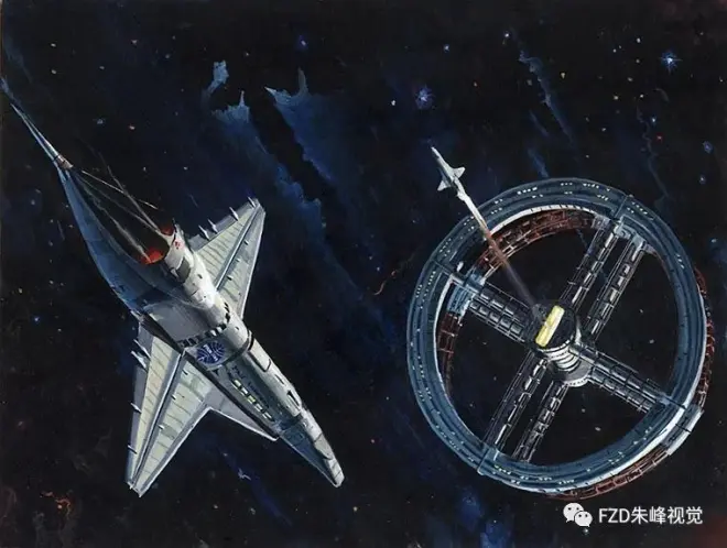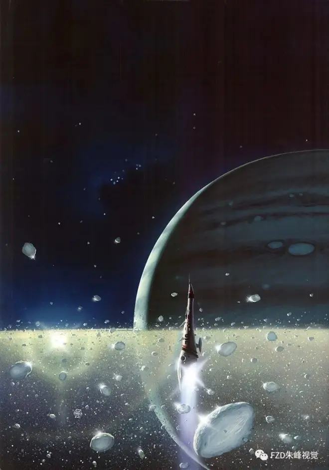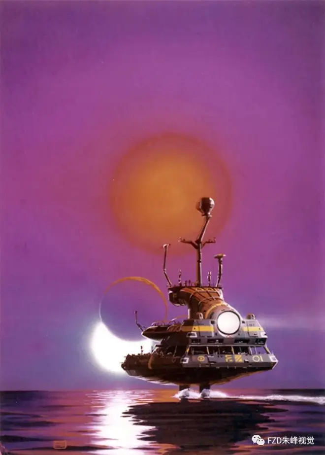 虽然埃尔森的机械与飞船依然是黄金时代那种天马行空的靓丽风格,但因为其对于机械细节的精致把控,很多飞船并没有伯基那种巨大感。埃尔森还很擅长使用对比,通过环境、科技的对比给人以难以形容的震撼感。