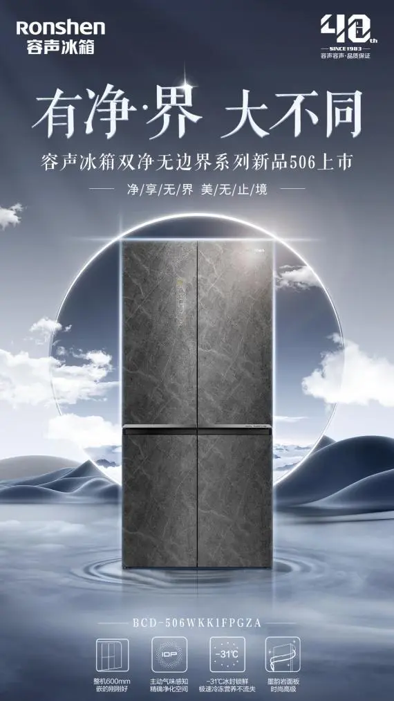 此次上市的双净无边界系列新品506是容声冰箱一直以来坚持科技创新的最新成果,将人们对于美感与美食的需求相融合,打造完美适配家居生活的新产品,重塑高端生活新净界,这是40年容声冰箱实力积累的见证。通过推陈出新打造冰箱差异化优势,树立行业新标准、新形象,引领冰箱行业高质量发展,为广大消费者健康、智慧生活不断注入新鲜能量。