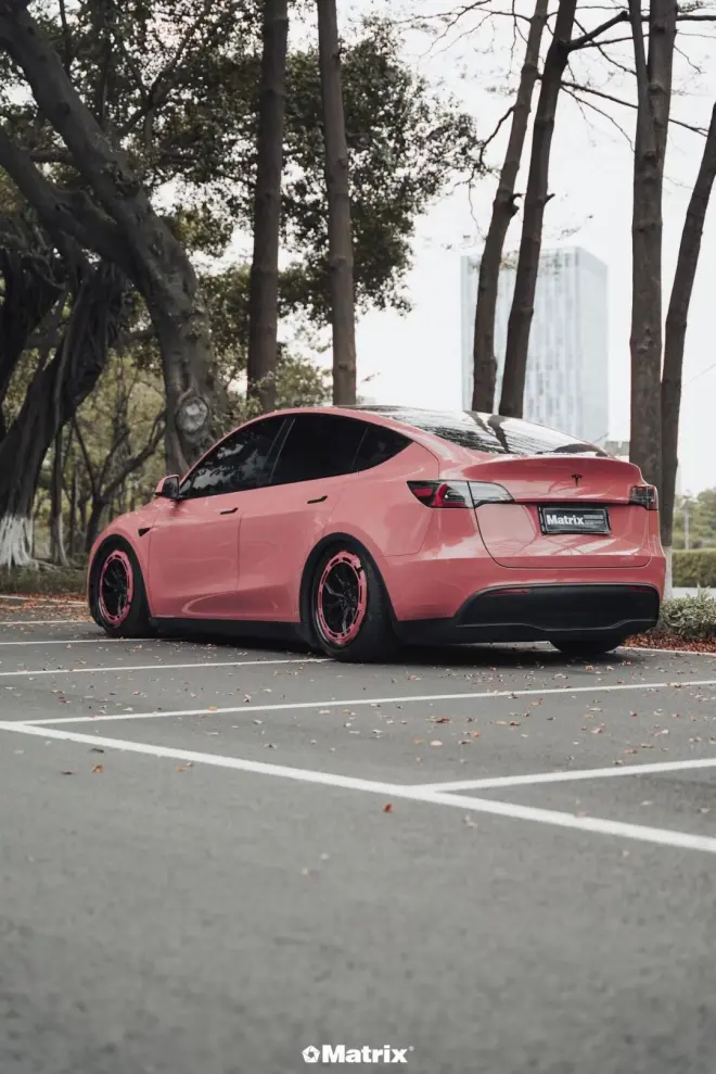 特斯拉ModelY矩阵改色膜摩根石红,特别的红色系