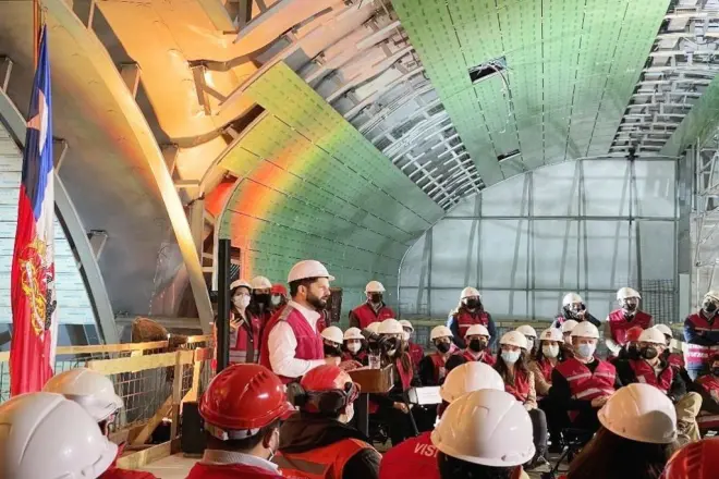智利总统加布里埃尔·博里克视察中铁隧道局圣地亚哥地铁项目