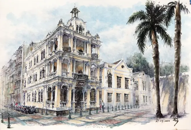 朱衛智老师自幼热爱绘画,近年致力于马克笔写生创作。2017年举办了「写意人生」风景写生画展,2020年举办了「细味故里」风景写生画展,作品主要以马克笔结合光面卡纸和油画布。现为速写澳门和澳门美术协会成员。