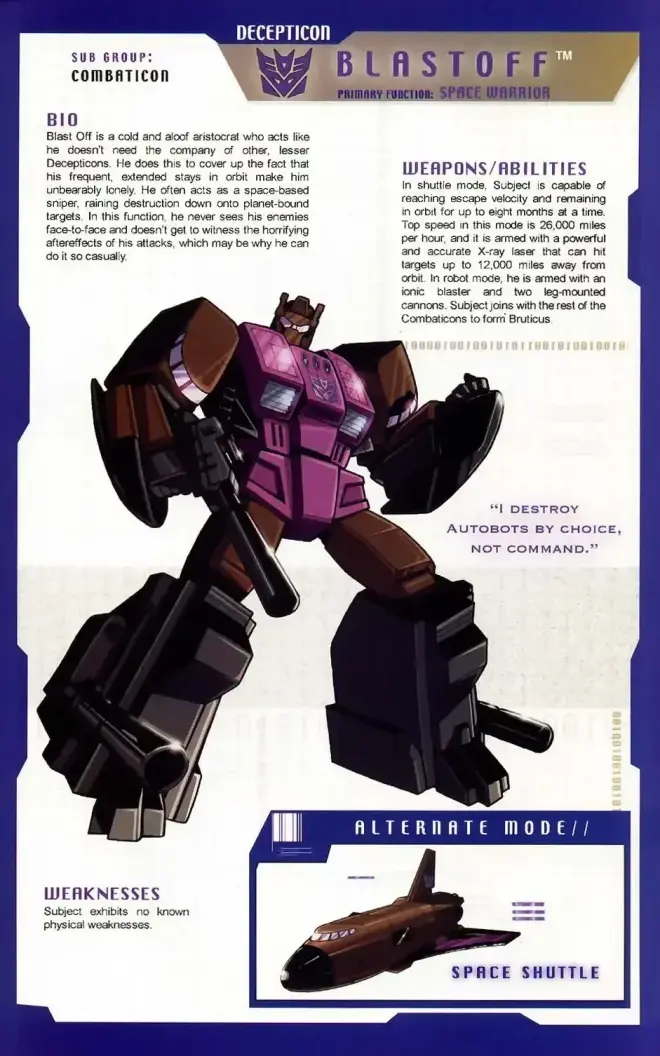 爆炸Blast Off(G1)的航天飞机模式Space Shuttle Mode配备了强大而精确的X射线激光X-ray laser,射程可达12000英里。