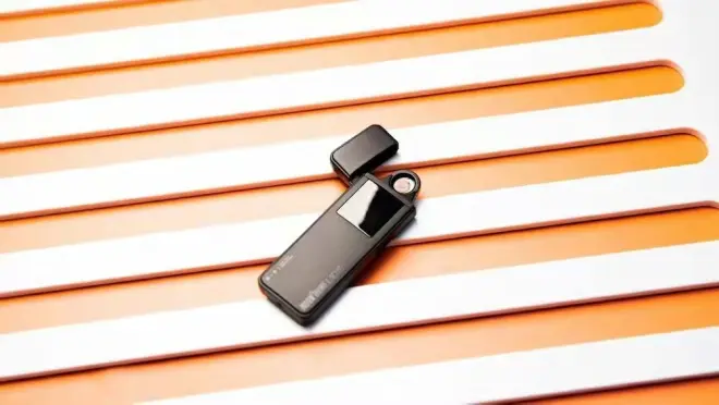全金属的锌合金机身,经过多道工序打磨,触感更加细腻,日常休息时还可以作为摆件把玩。机身正面有一块显示屏,采用开盖即亮的设计,可以显示电量信息、充电反馈和点火情况等,带来了更加清晰的交互体验。 极简的电量指示采用四颗光点的设计,四颗光点全亮是为满电状态,随后根据使用时间依次递减,一颗灯闪烁时则急需充电,此时打火机为即将关机的状态。