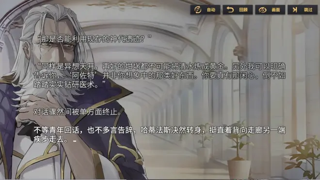 接下来是本章剧情第四节,朔晨被伊莎贝拉在清晨吵醒,被迫参与伊莎贝拉对父亲研究成果的调查,而这个调查过程中,在米娅的帮助下,两人了解到伊莎贝拉父亲研究过“阿佐特”,与伊莎贝拉的目标一致,但是如今的伊莎贝拉父亲却反对伊莎贝拉对“阿佐特”的研究。这个问题随后便得到了解答。炼金大师密弥尔·哈蒂法斯面对提问者,几乎愤怒地表示,“在迪尔纳诺已然陨落的今天,任何人都不可能成功炼制出‘阿佐特’”,“再好的坩埚都不可能将清水炼成黄金。”这样的回答。