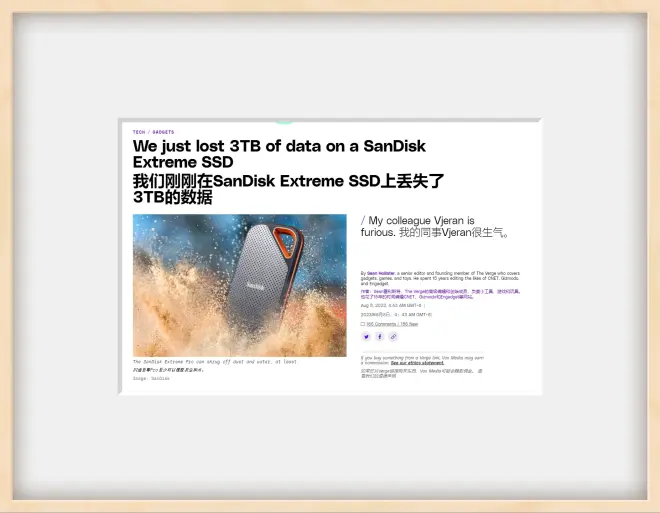IT之家 8 月 11 日消息,自今年年初以来,不少购买闪迪 Extreme 移动硬盘的消费者在电商平台、社交平台上反馈,存在突然擦除数据、无法读取等各种奇怪问题。