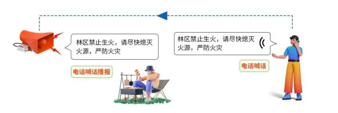 若发现有人在景区内进行野炊,用户就可以通过语音报警器电话喊话功能阻止游客的危险行为,避免伤害进一步扩大。如“林区禁止生火,请尽快熄灭火源,严防火灾”。