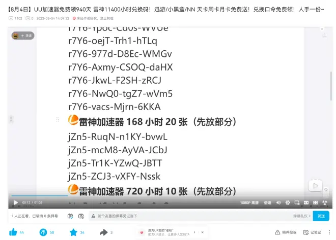 【8月4日】UU加速器免费领940天 雷神11400小时兑换码!迅游/小黑盒/N的评论 (共