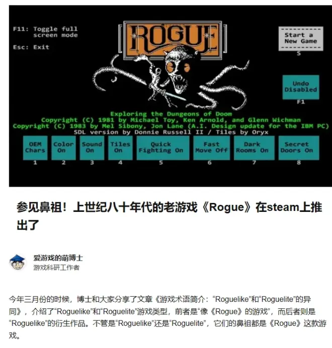 我没在玩你,这个游戏的名字就叫肉鸽《rogue》