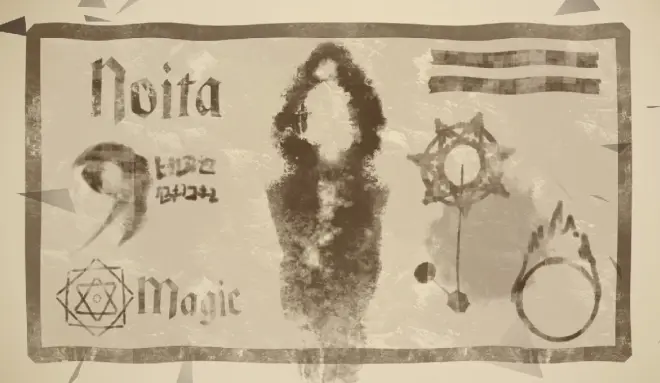 里面的世界就是noita的世界,而后面的三个眼睛,则是代表着这个世界的三位神