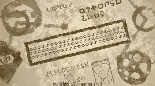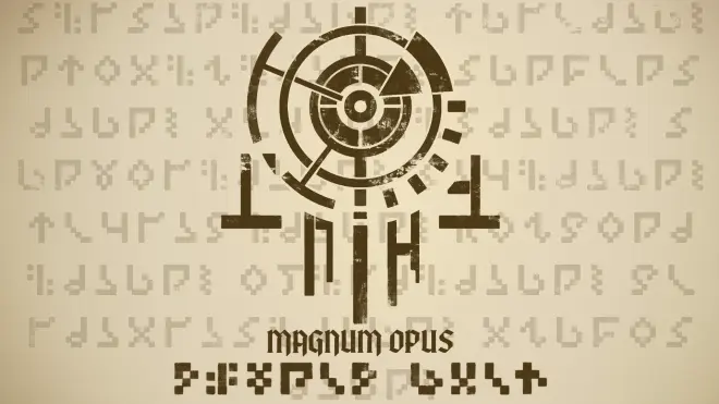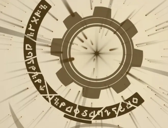 在视频的最开始,我们可以看到,齿轮和符文环开始转动,有人可能已经发现了,符文环里的文字是Noita游戏里的一种常见的符文,这种符文便是接下来解密的大部分核心: