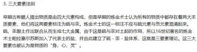 他们相信不管是黄金还是低贱的金属在一开始都源自于那个“原初物质”,所以炼金的步骤本质是将其倒退,再找到“引导到成为黄金”的过程。