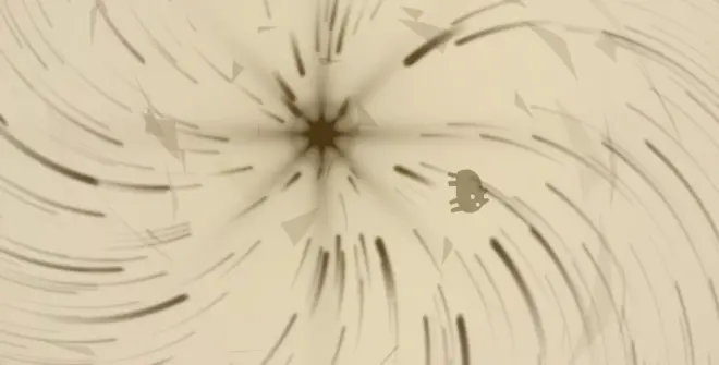 随之而来的是万物的坍塌,一切都被卷入旋涡,在这个过程, 你会发现上图背景的符文也是在一个个的往旋涡中心卷去。