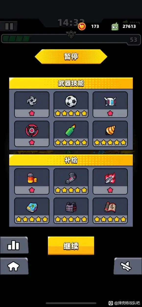 技能选择:苦无,无人机,守卫者(后面的关卡击退鬼魂还有格挡子弹,必备),还有当前版本最强3大AOE技能,足球>哨箭>燃烧瓶,并且这三个技能不用合超武,提升不大,极大的节省了被动技能。