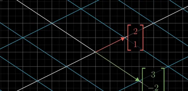 将变换作为代数的俯瞰是合理的。人类数学大厦建立在集合论基础上。代数在抽象世界运行时有两个核心概念,一个是“空间”:一套元素的集合,另一个是“代数结构”:集合中元素的关系规则。那变换就相当于“运动”。著名的线性代数可视化动画博主:3blue1brown给出过的几何解释:线性变换是保持原点不变、使坐标网格平行且等距的操作: