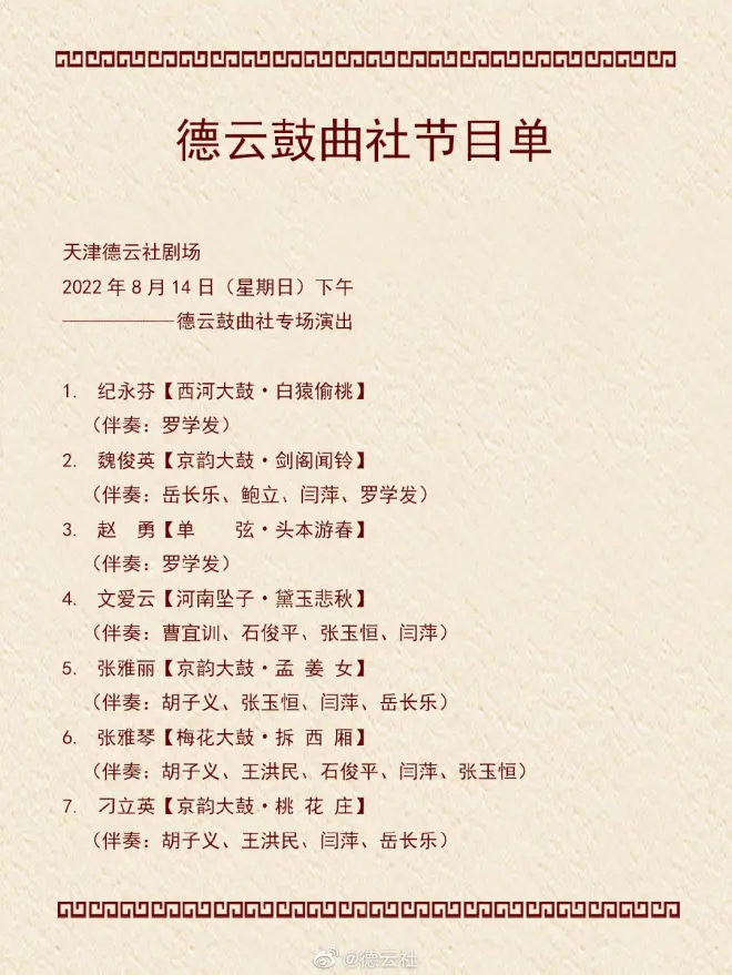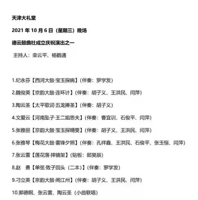 2023年2月,德云鼓曲社恢复日常演出,进入了一个新的时期。希望坚持德云社把鼓曲坚持做下去,引进更多优秀的新、老演员,给观众带来更多精彩的曲目。