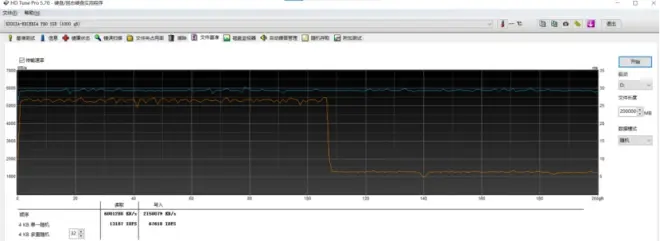 给固态硬盘加入独立缓存的目的是能在较大吞吐量读写的时候保持稳定性,从测试结果来看,大约是在110GB左右开始掉缓。掉缓前保持了非常高且稳定的读写速度。对于日常使用来说,只要你一次性读写不达到110GB左右的吞吐量,速度是非常快的,这在接下来的实际体验中就能明显感觉到。