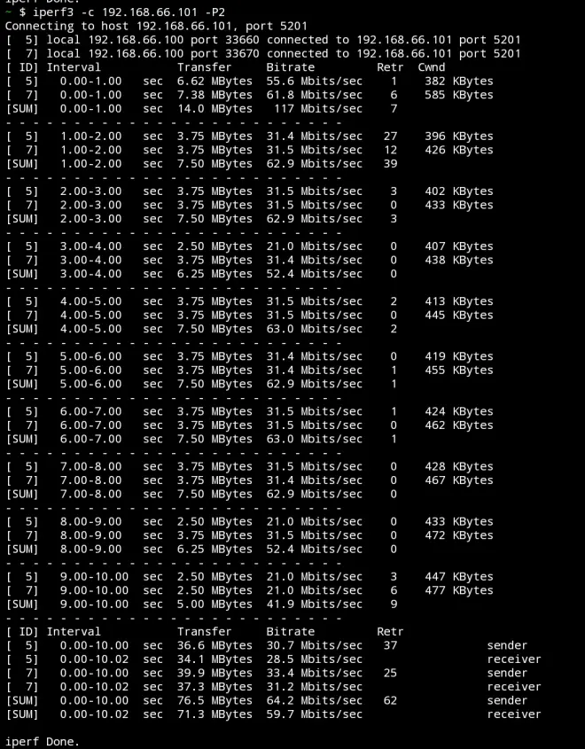 它的2.4Ghz WiFi6协商速率能到200Mbps多,实际真的可以跑到吗?我拿两台支持WiFi6的手机用iperf3测速看看,峰值速度能到100Mbps,平均速度有72Mbps,基本上能跑满4G速度了。