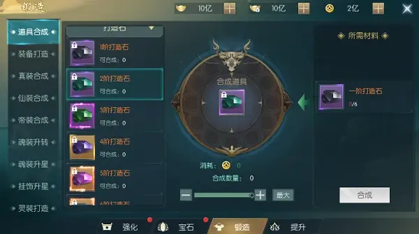 可以使用不同数量的打造石合成新的打造石来合成装备。