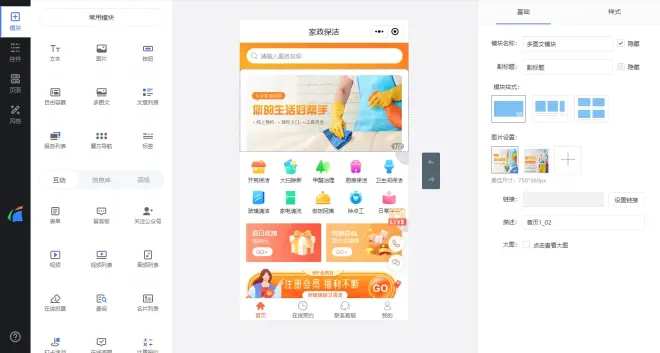 在小程序制作工具上挑选一个适合家政服务的模板。确保模板具备预约下单、在线支付、订单管理等功能,以满足用户的需求。