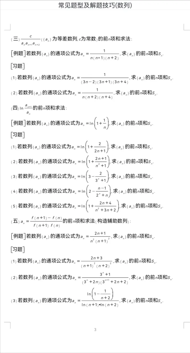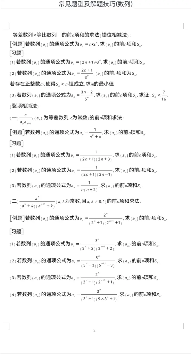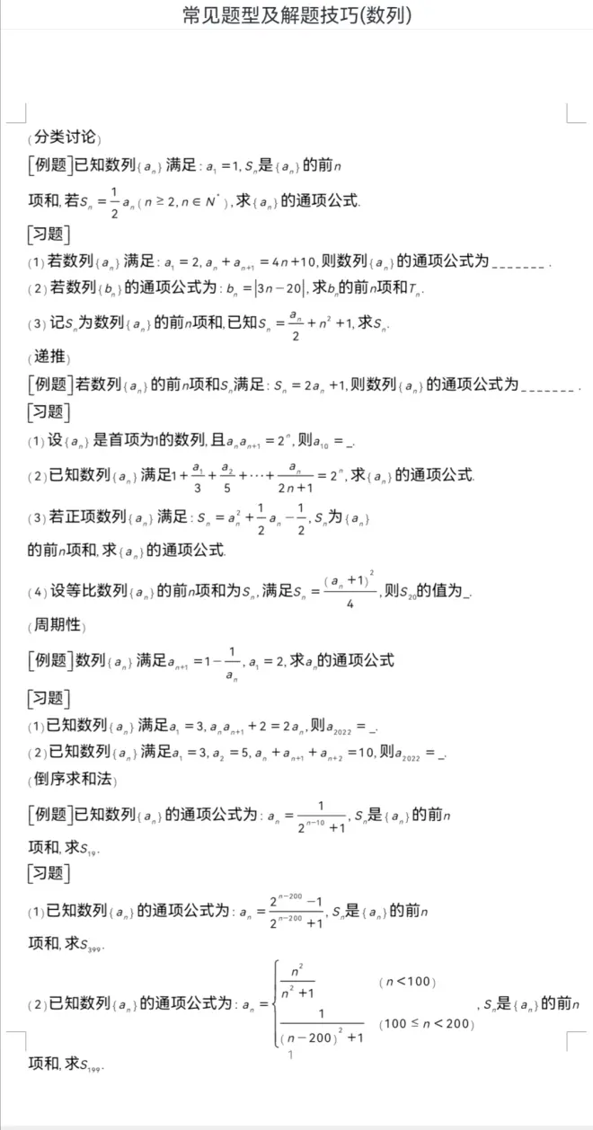 以上为我本人所见过的有关“数列”部分的所有常见题型及应对策略和解题技巧 ,并压缩在这11页中,涵盖了数列部分的几乎所有题型和变化。只要能将这些内容吃透,数列方面便不会再有任何问题~