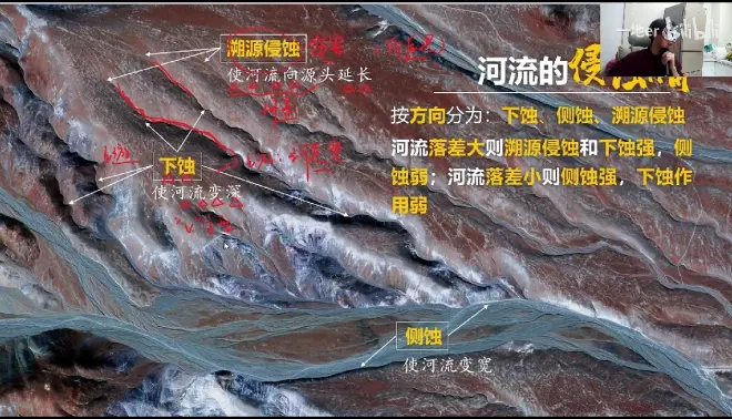 按方向分为:下蚀、侧蚀、溯源侵蚀