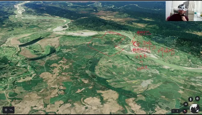 河道在河谷内弯曲游荡,