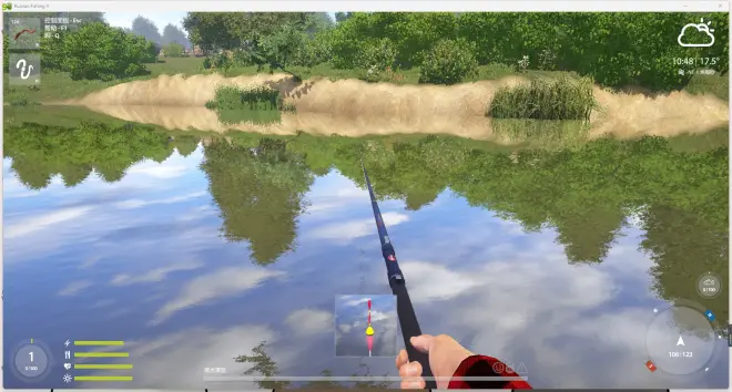 找好位置以后,掏出搭配好的新手杆,按“-”(减号)把漂调到18厘米