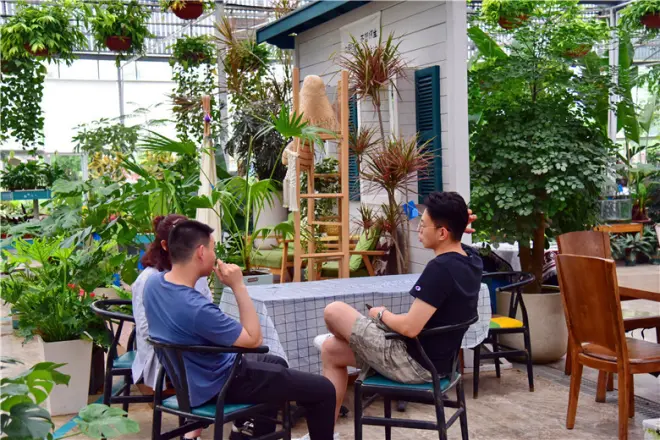 玻璃花园还是功能型花园,兼具艺术、研学、教育、亲子、休闲、度假、茶饮、美食等功能,还设有客厅休闲区、热植展示区、多肉观赏区、书吧阅读区、围炉煮茶区、冰爽夏饮区等,小小的造景别出心裁,游客身处其中,不但能够尽情感受绿植带来的惬意感,而且可以品尝园区在夏天推出的冰爽饮品。