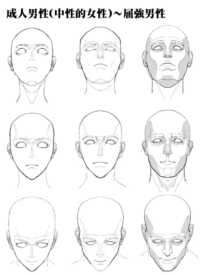 今天给大家带来一套不同年龄头部画法特征,各种脸程角度。