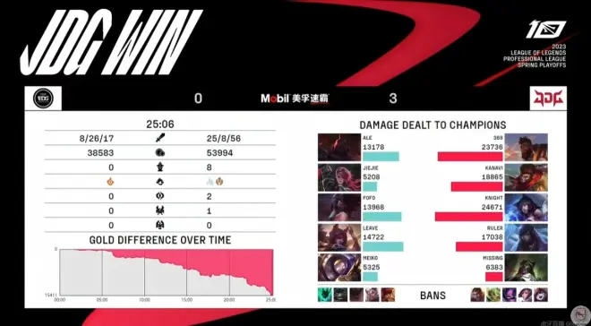 在今天LPL季后赛胜者组决赛中,JDG最终以3-0轻松碾压了EDG晋级到了最后的决赛中,另外他们也是获得了LPL第一张通往季中赛MSI的门票。整个Bo5的三场比赛用时非常短,几乎只花了2个小时左右就下班了。EDG除了第一局表现还不错之外,二三局几乎都是在被JDG单方面吊打。