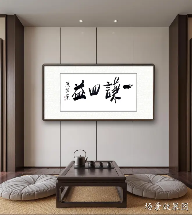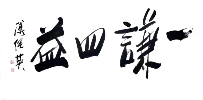 傅继英书法:一谦四益。意思指谦虚能使人得到好些益处。出自《周易·谦》。